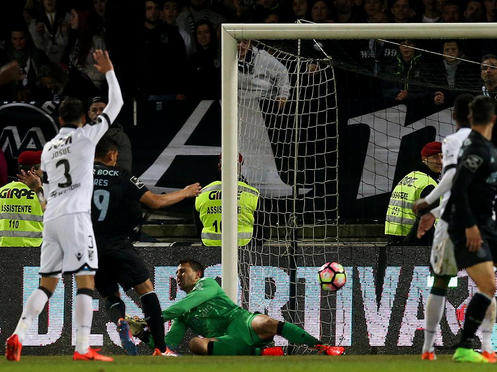 A primeira oportunidade pertenceu aos portistas, por intermédio de Maxi. Rafael Martins respondeu logo de seguida com um remate de fora da área que passou um pouco ao lado da baliza de Casillas. O jogo estava a ser cada vez mais disputado no meio campo e com poucas oportunidades, de parte a parte. À passagem do minuto 36', depois de um cruzamento do lado esquerdo, a bola sobrou para Herrera, ainda passou por André Silva e Tiquinho Soares ficou na cara de Douglas, tendo atirado para o primeiro golo da partida. Não festejou. Bruno Gaspar acabou por colocar o avançado brasileiro em jogo... O Vitória reagiu! Com intensidade. Mas sem qualquer efeito. Ainda que seja de salientar a oportunidade de Raphinha à beira do intervalo com a bola a passar a centímetros do poste esquerdo.
